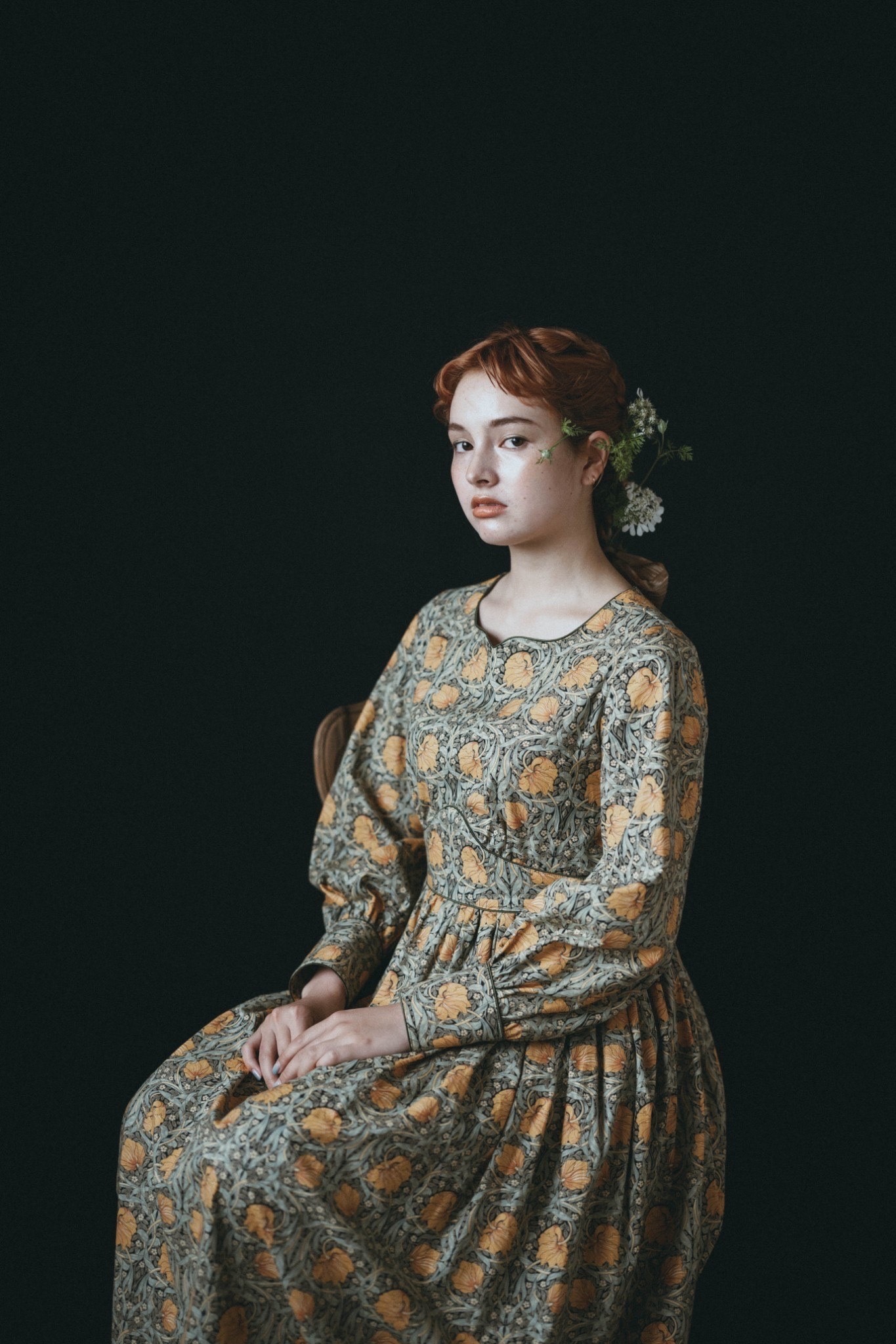 ウイリアムモリスの生地を使ったドレスは上品でとてもエレガントです。