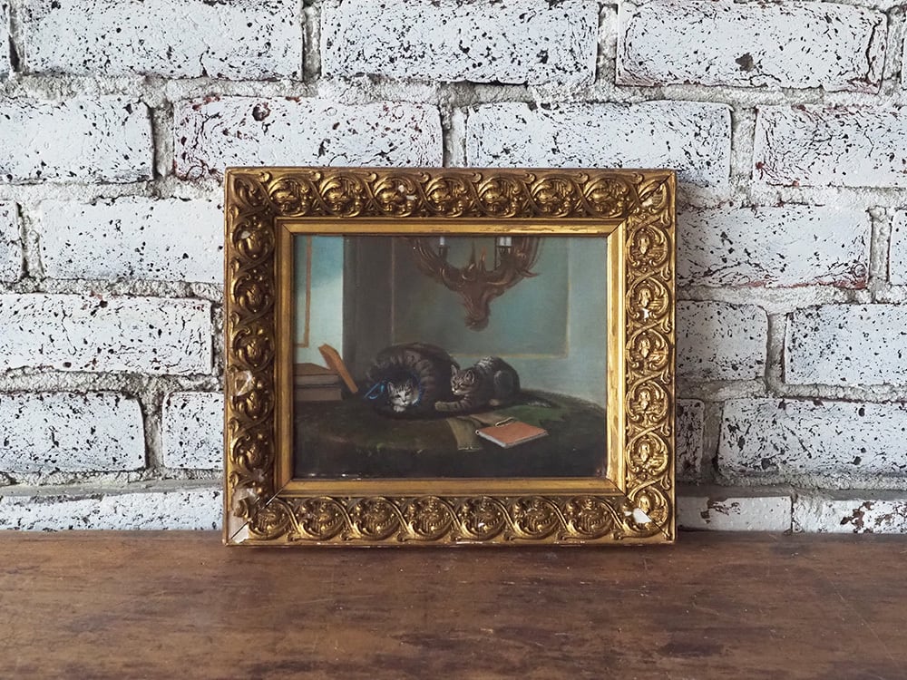 2匹の子猫が描かれた油彩画