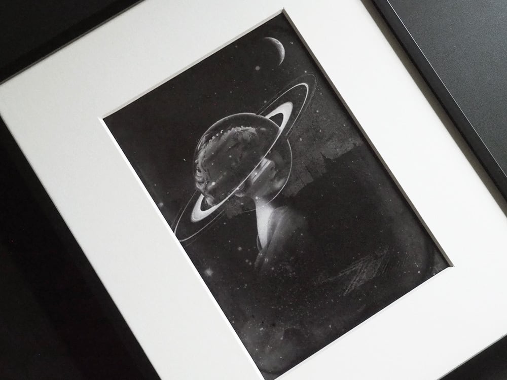 そのイメージに合う、古書や写真の切れ端・アンティークポストカード、古い手紙などを探し出し、それらエフェメラにコラージュ、ペインティング、ドローイング、アッサンブラージュ、フォトグラフ、CG、エポキシ樹脂、エイジング塗装など