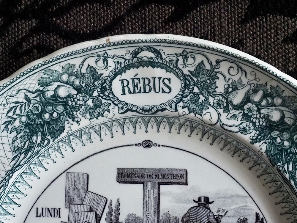 上部に描かれている”RÉBUS”というフランス語が”判じ絵・パズル”というような意味です
