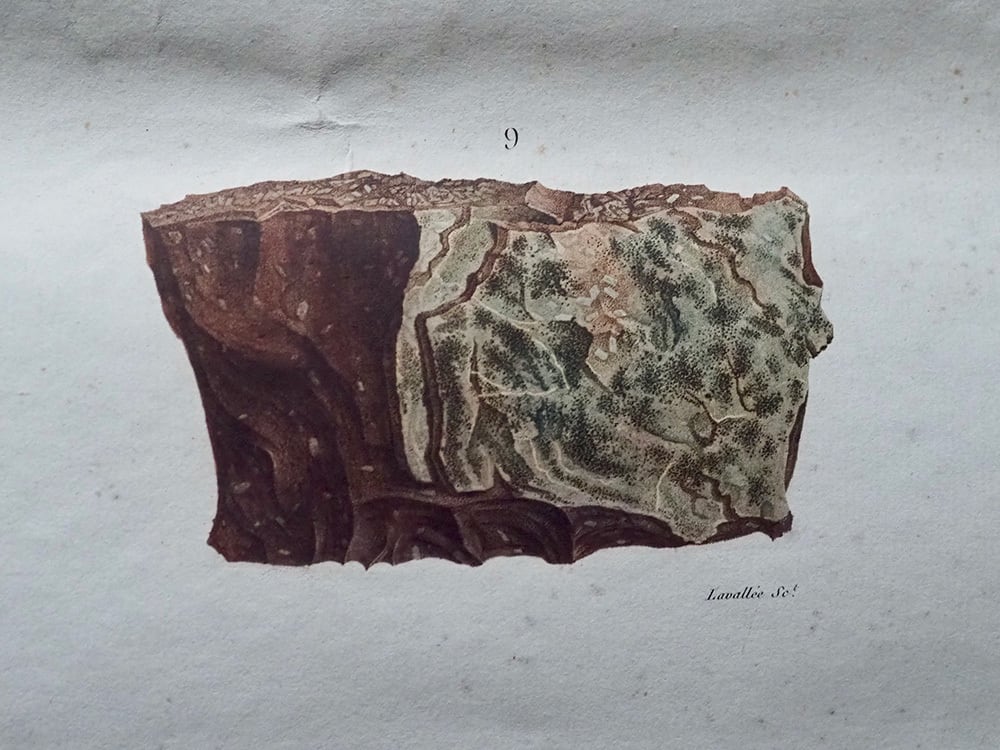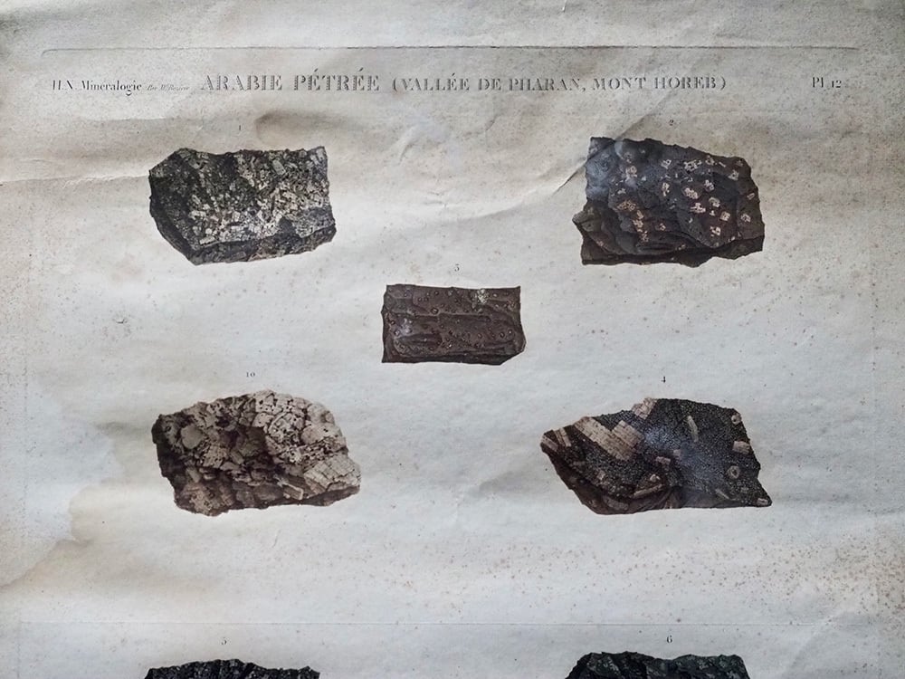 エジプト誌は皇帝ナポレオンがエジプト遠征をした時に学術調査団を組織して同行し 遺跡・動植物・地質・水質・地理などあらゆる事象を調査した記録で、『古代篇』『現代篇』『博物篇』『地図篇』と分類されていて、その中の『博物篇』鉱物・化石の分類は