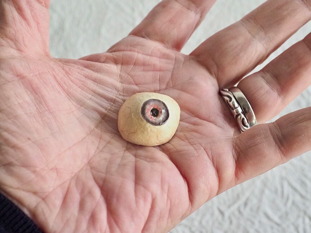 この義眼には赤鉄鋼(ヘマタイト)のニュアンスを使用しました