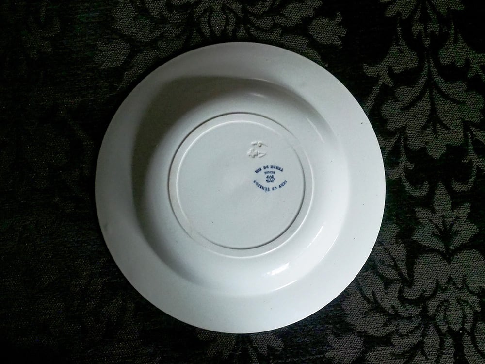 バックスタンプの”Terre de Fer"というのは半磁器半陶器の総称で、陶土に石英や長石を加えて強度を高めて造られました