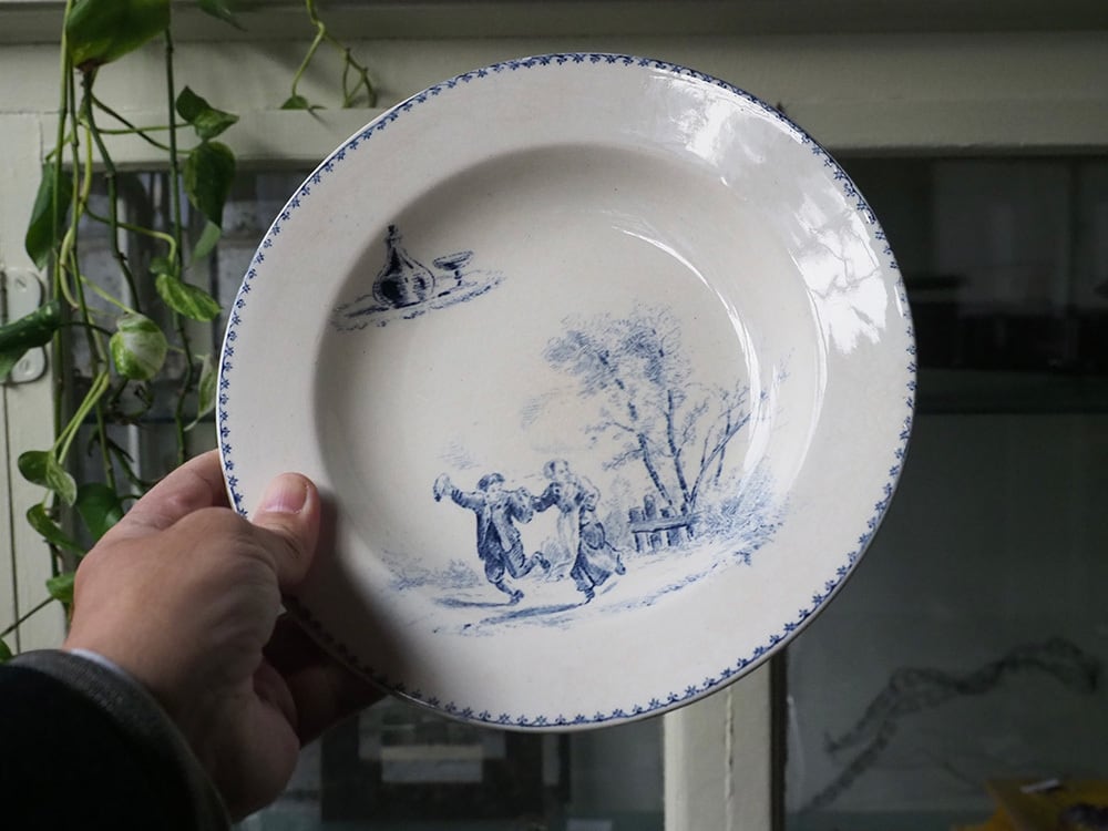牧歌的な風景が描かれたCreil et Montereauのお皿