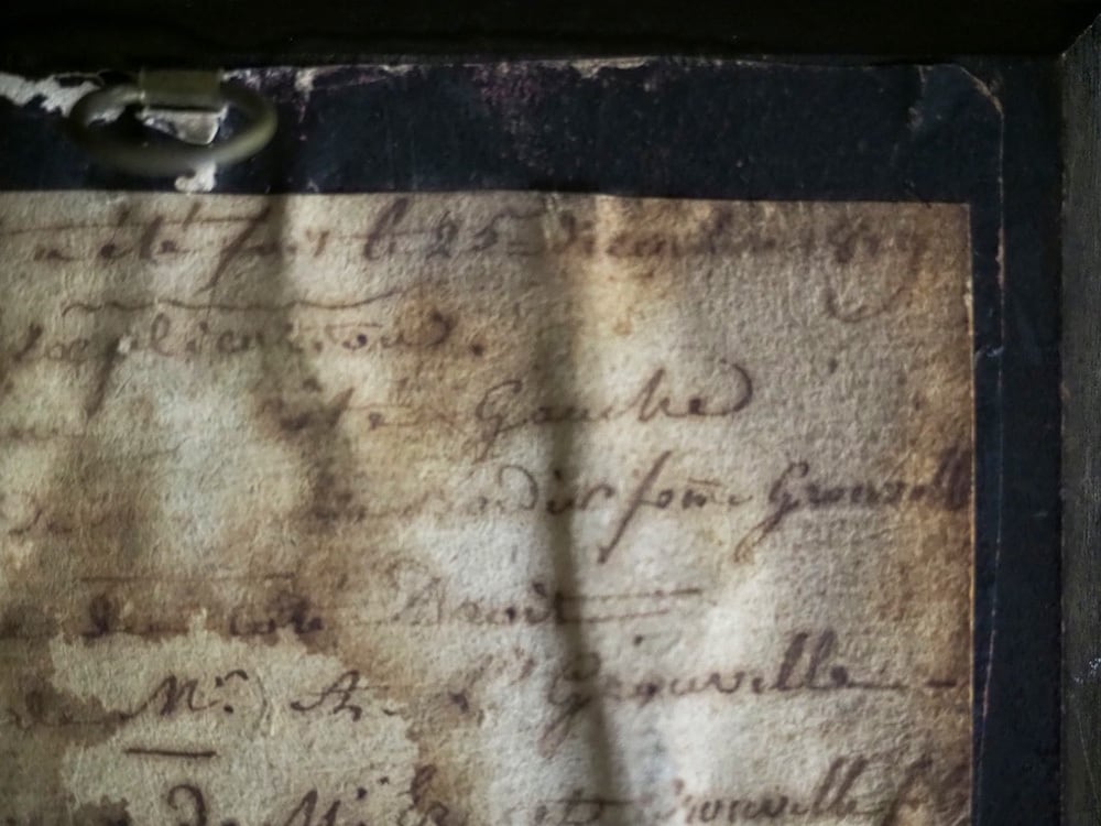 水濡れしてわかりにくくなっていますがGrouvelle家の家族を追悼する内容のようです