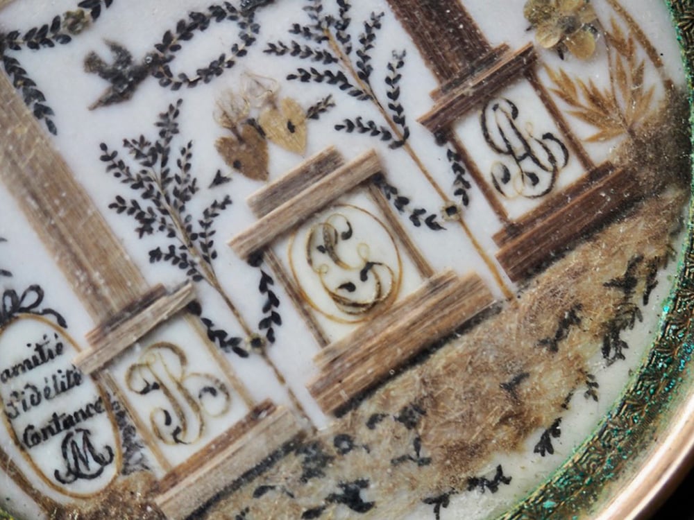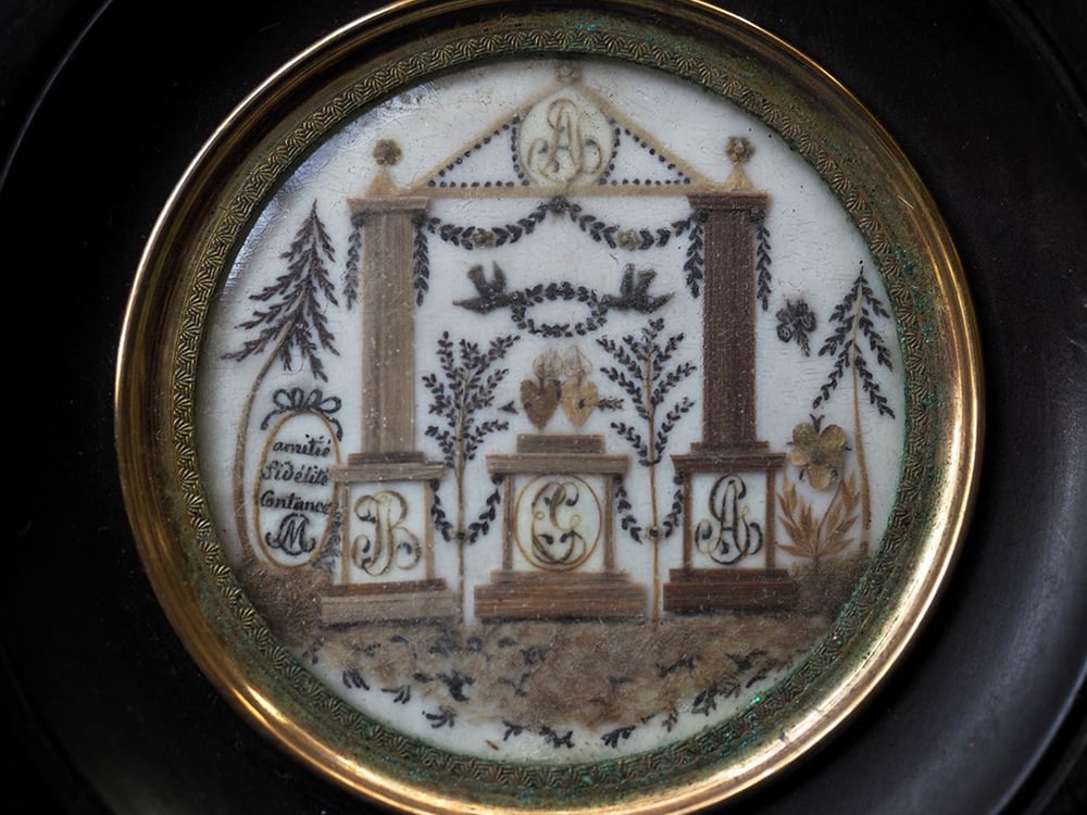 遺髪を使って指輪やウオッチチェーンなどモーニングジ・ュエリーと呼ばれる装飾品や額装品などを造っているが、その中でもこう言ったHairworkは最も手の込んだ工芸品ではないでしょうか