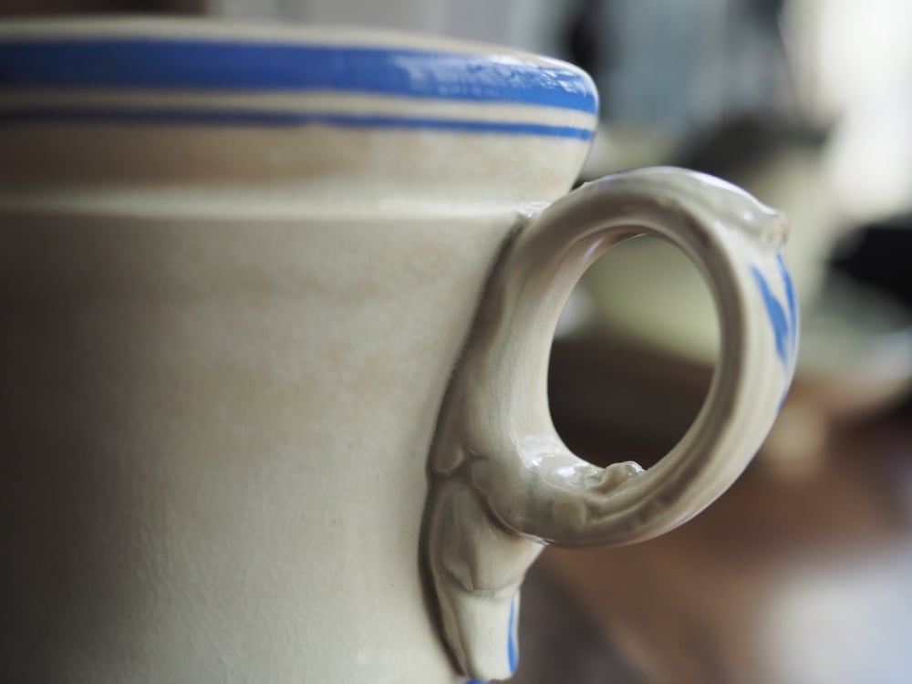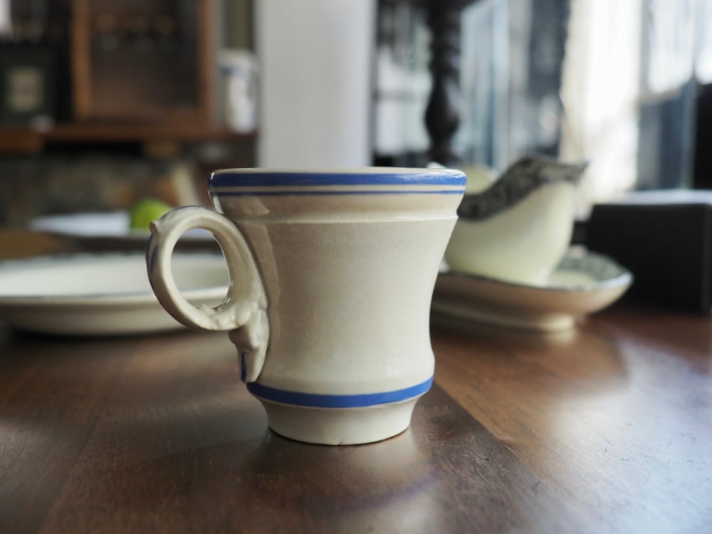 Brûlotブリュロとは、温かいコーヒーを飲んだあと、裏を返してまだ暖かさが残った高台にブランデーやカルバドスなど強いお酒を入れてキュッ!と飲むように造られたカップ