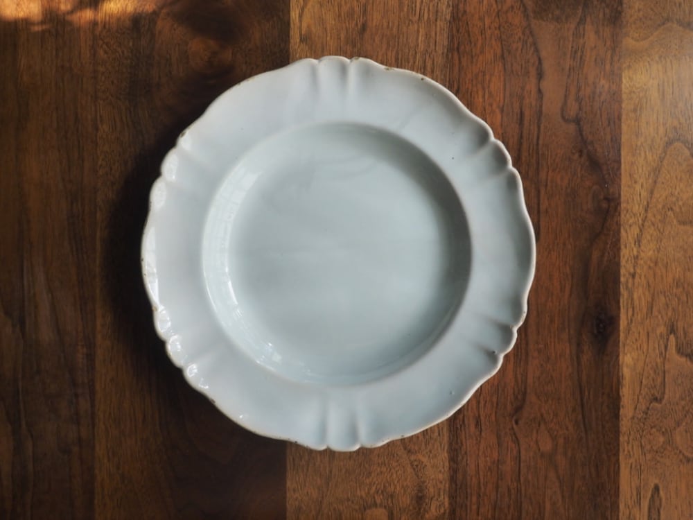 口縁に何箇所か削げがありますが、上品な白から覗く素地の土の赤色がとても古さを感じます
