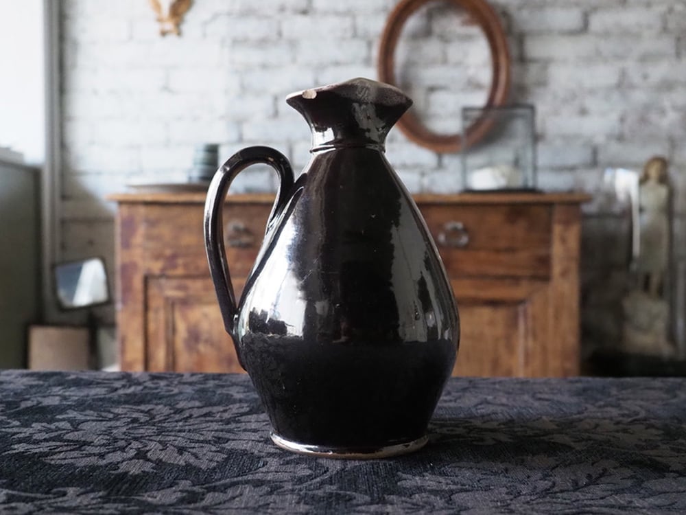 外側が黒茶に、内側が白系の釉薬で焼かれた焼き物